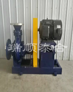 干式臥式螺旋離心泵包含泵體,泵蓋,帶輸出軸的電機,在泵體內(nèi)裝設(shè)的泵軸、帶座軸承、離心葉輪、機封和機封旋蓋,是根據(jù)加長連軸器與電機連接的,泵的轉(zhuǎn)動方向,從驅(qū)動端看,為順時針轉(zhuǎn)動。特點關(guān)鍵在于,它還包含位于電機輸出軸與泵軸之間設(shè)置的對夾式連軸器,以及安裝在帶座軸承上的以輔助支承泵軸的導(dǎo)滾動軸承。